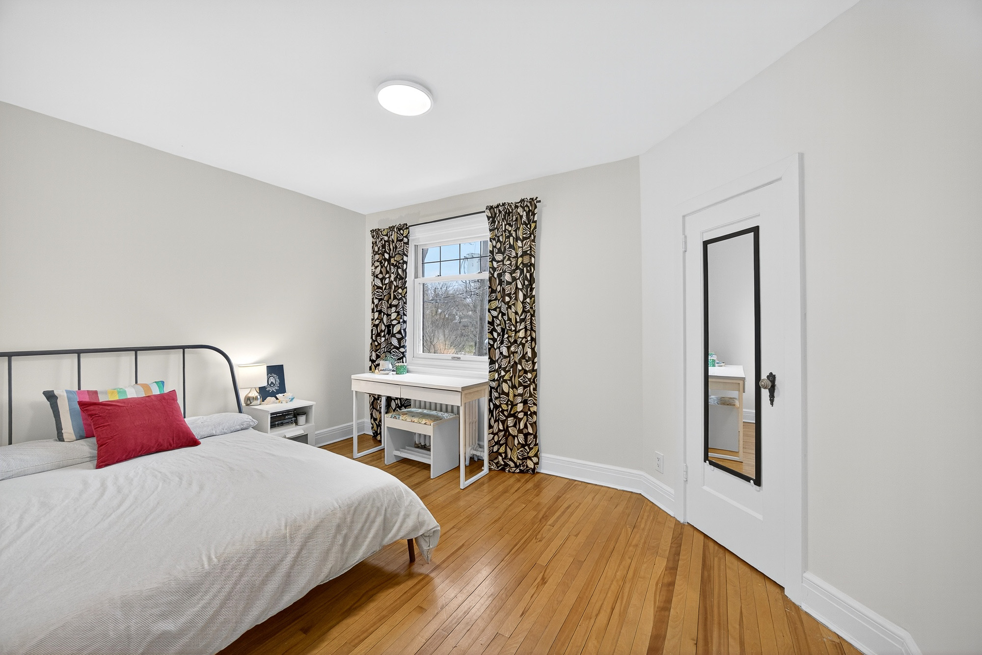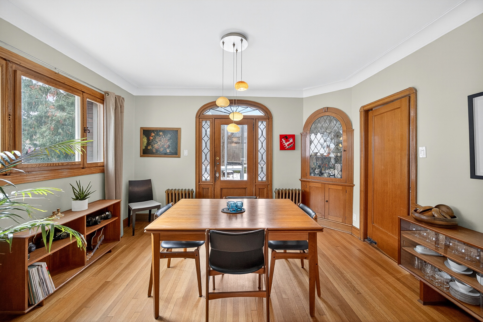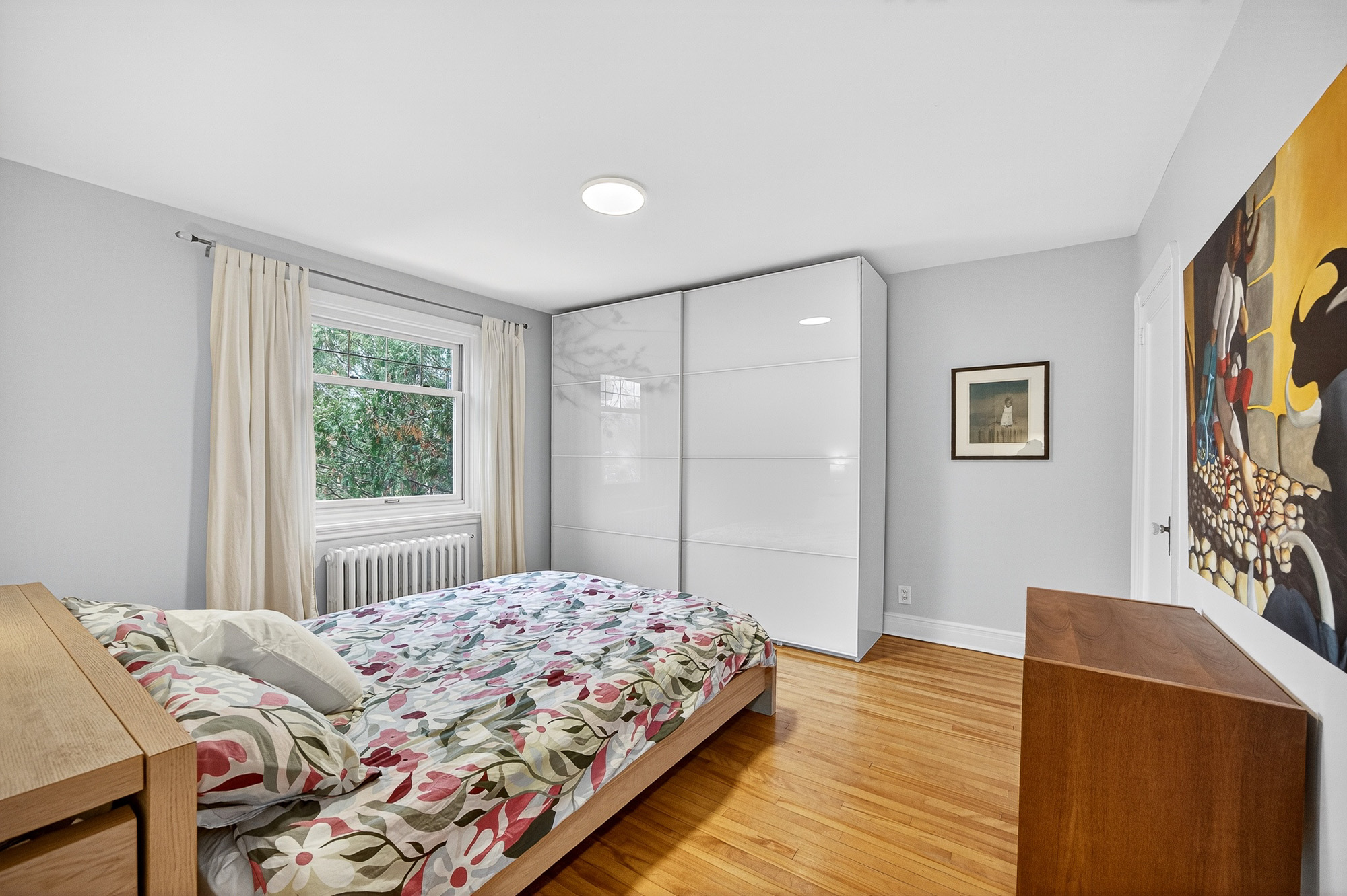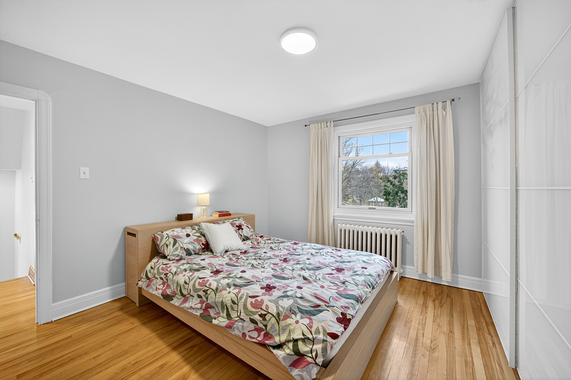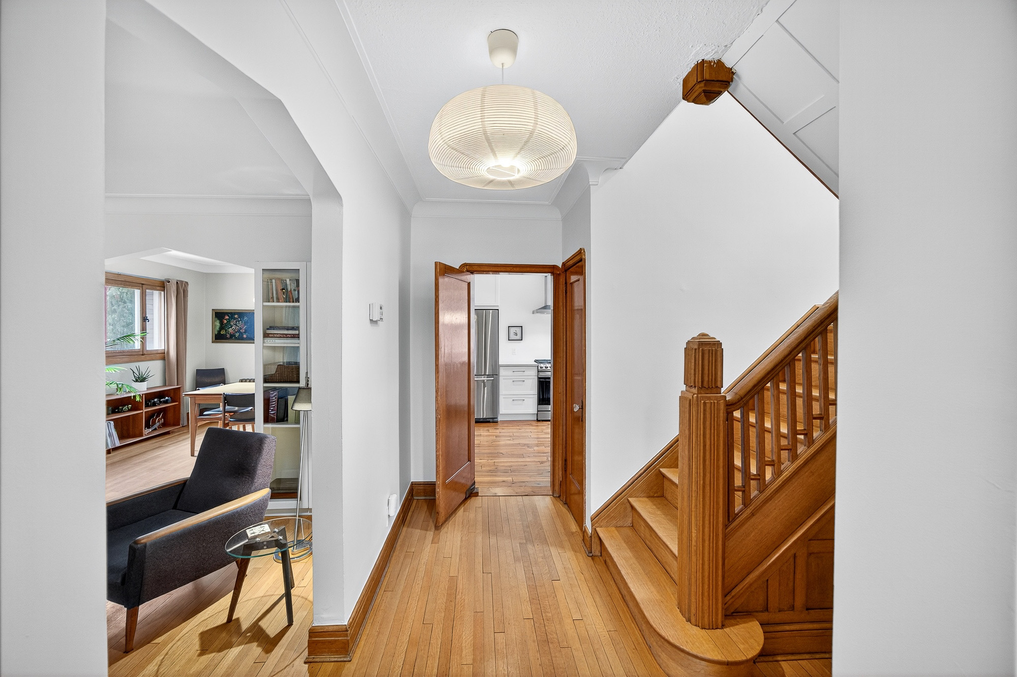 Inside, the main floor is bright and inviting, showcasing beautiful original Art Deco moulding and a decorative fireplace that adds warmth and charm. The living room is absolutely stunning and a space you’ll be proud to show off. The dining room includes a classic built in cabinet perfect for glassware, serving pieces, or a modern bar setup, and opens onto a sunny deck and a generously sized backyard. The updated gourmet kitchen (2020) is designed for both everyday living and serious cooking, with high quality finishes and a thoughtful layout. Upstairs, you’ll find three generous bedrooms with built in closets and a stylish bathroom featuring double sinks and a heated towel rack. The top level offers a fourth bedroom with double closets and a lovely view over the park. The lower level includes a flexible den area ideal for a family room, gym, or home office, along with a third full bathroom and laundry. The attached garage offers excellent storage and convenience.